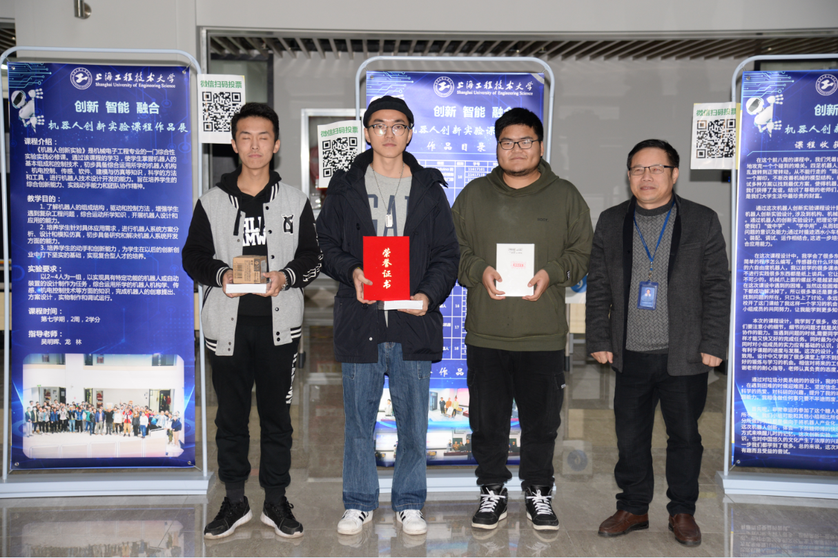 通过现场投票,最后评选出了大家喜欢的优秀作品6件。张华经理给得票最高作品进行了颁奖并做了总结讲话。张经理对同学们能在如此短的时间内高质量地完成课程任务给予了很高的赞扬,对“机器人创新实验”教学改进取得的成绩给予了充分肯定和鼓励,同时就如何进一步提升课程质量提出了宝贵意见和更高的希望。