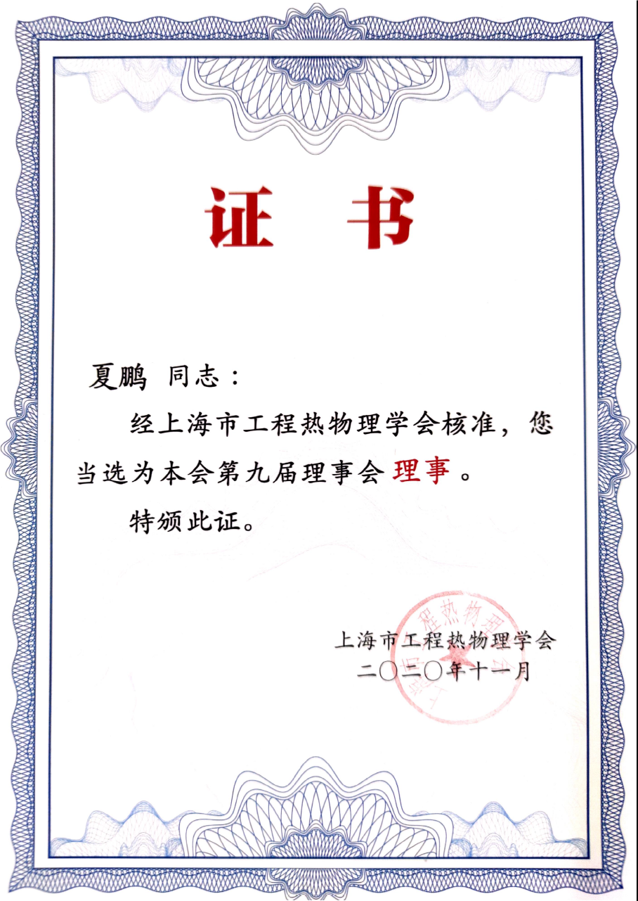 本次会议选举了新一届学会理事会和监事会,太阳成集团tyc33455cc姜小敏教授获聘荣誉理事,夏鹏副教授当选上海市工程热物理学会第九届理事会理事。