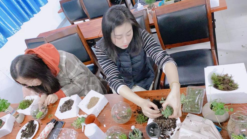 在学校“十三五规划”收官之年、学校博士点建设关键时期、学校“十四五规划”谋划时,社团通过活动凝聚教职工为学校发展贡献更多力量,共同逐梦。本次活动旨在为在植物爱好者提供一个交流、竞技、互动的平台,营造感受生活、交流协作、探讨植物养殖的氛围,更好激发教职工以昂扬向上的精神风貌积极投身于学校现代化工程应用型特色大学建设,由校工会主办,穿庭社承办的“微微一植、桃李余香”太阳成集团教职工2020年秋季教职工办公桌微型景观植物DIY活动于2020年11月27日开展。