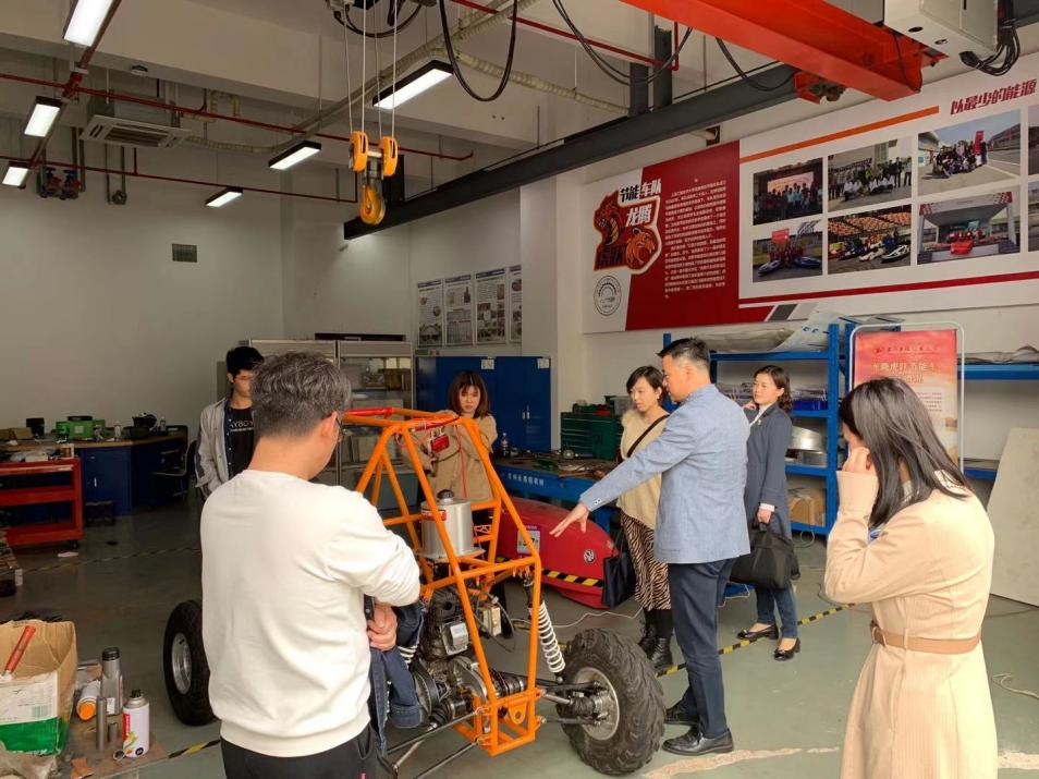 王东阳副书记代领华域汽车一行参观了学院龙腾虎跃赛车队、上海市新能源汽车振动噪声测试实验室、老员工科创中心,相关实验室负责人员进行了一一的讲解。