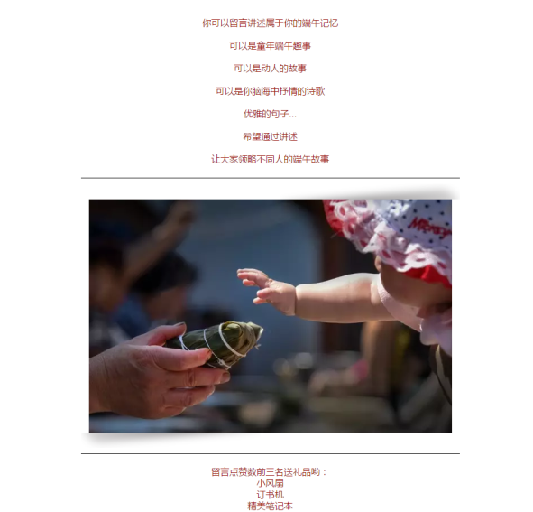 在线下,学院员工会宣传部制作了精美的宣传海报,张贴在学院公告栏、宿舍园区等处,让员工了解这一传统佳节,感受端午佳节即将到来的氛围。线上,学院通过学院微信平台推送了端午节的相关知识,主要包括端午佳节的来源、传统习俗等内容。同时在线上组织了关于端午佳节的留言,征集员工对于端午佳节的所思所想所感,为员工提供沟通的平台。
