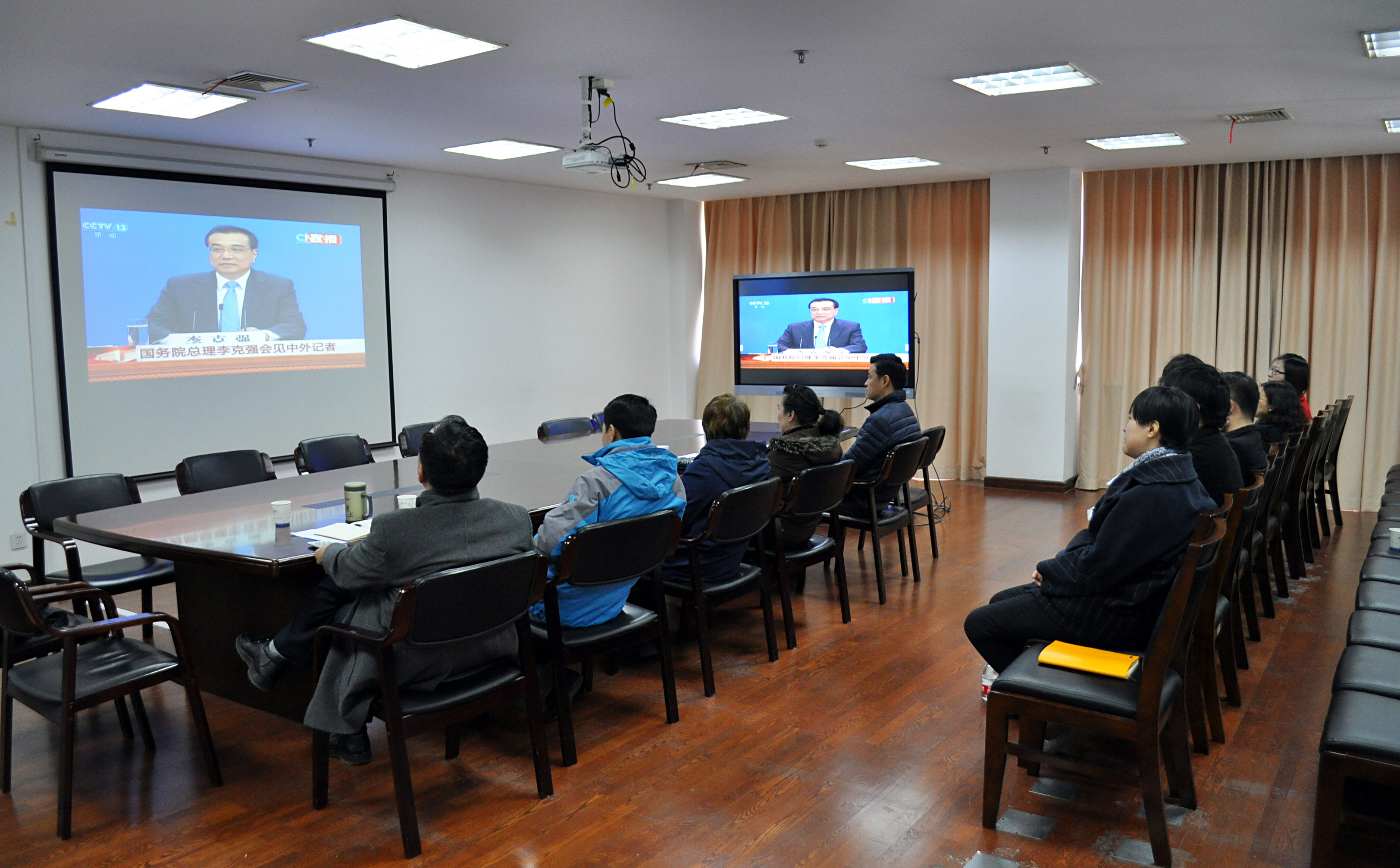 在2小时17分的见面会上,李克强总理一共回答了18家境内外媒体的提问,涉及经济发展、就业形势、房屋产权、雾霾治理、创新创业、中美关系等热点议题。在收看过程中,大家聚精会神,认真记录问答的要点。记者会结束后,大家展开了热烈的讨论,分享了各自的心得与体会。大家认为,李克强总理针对相关问题的回答不仅是总理个人风采的展现,也是对政府的执政理念、施政原则所作的阐释,使大家对未来改革与发展的稳步推进充满信心。