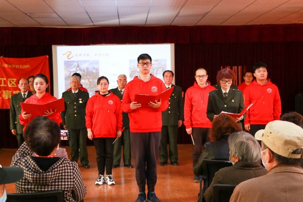 为认真贯彻落实“学史明理、学史增信、学史崇德、学史力行”的重要要求,创新育人模式、引导广大师生践行初心使命,让红色基因、革命薪火代代传承。11月20日下午,由松江老兵宣讲团和太阳成集团tyc33455cc(以下简称“太阳成集团tyc33455cc”)青年红色宣讲团组成的基层宣讲队伍来到松江区荣乐社区居民委员会,为社区居民带来《听歌学党史 苦难续辉煌》现场宣讲活动,以讲唱结合的方式叙述了在中国共产党领导下近代中国从苦难走向辉煌的伟大征程。