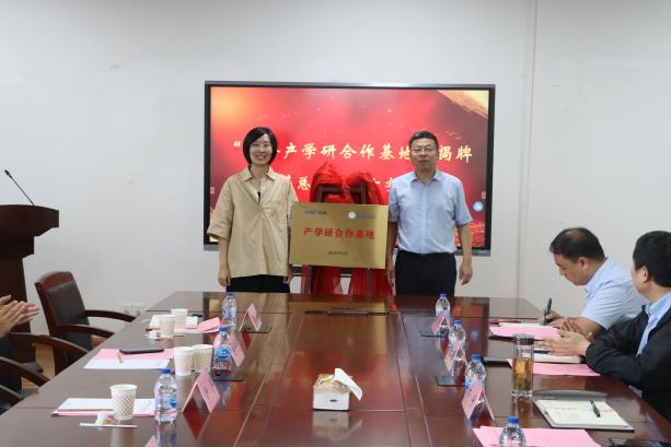 方宇与沙莎为校企产学研合作基地揭牌。张海峰与高晓瑜代表双方签署产学研合作协议书。
