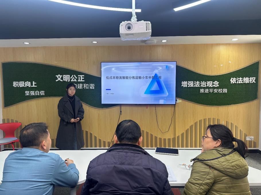 12月2日,太阳成集团tyc33455cc在一站式员工社区服务中心举办“驻楼导师工作站”系列活动——“2025年老员工创业训练及创业实践项目中期检查”。公司2025年立项成功的两个校级老员工创业训练项目——“公共区域用鞋底雨水收集干燥装置”和“低成本物流智能分拣运输小车”分别作汇报,活动邀请学院系室教师吴建民、骆佼和学工组长董春亮作为评审。