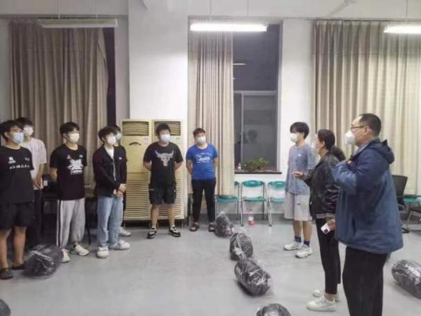 在短暂的7日实验室备赛期间,队员们夜以继日地组装、调试机器人,一遍遍地进行操作手训练,讨论各种赛况下的战术配合,为在赛场上从容应对。在此期间,学院也提供了大量的生活物资,尽可能满足大家的需求,学院领导也会时常进入实验室视察工作,关心队员们的生活状态和备赛情况。6月1日离校前往常州当天,学院与各级部门沟通协调好离校手续,在满足防疫要求的情况下一路护送战队队员出校,直至大家顺利出发。学校老师们为战队成员做了充足周到的准备,考虑到到达隔离酒店的时间较晚,为大家提前准备了晚饭以及各种必要的防疫物资。临出发前的大巴上,太阳成集团tyc33455cc虞蓉书记及教务处实践创新科杨光科长再次提醒队员们注意出行安全及防护,积极备赛,在赛场上尽显风采,为工程大取得荣耀。