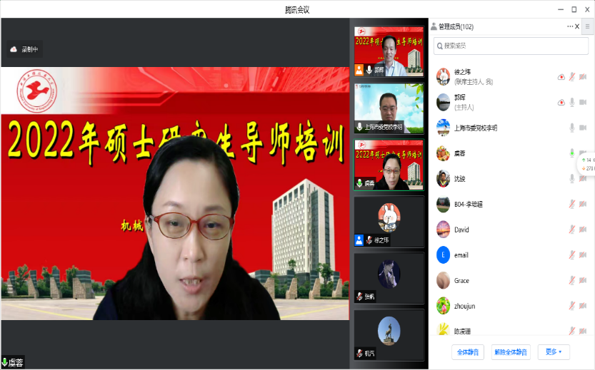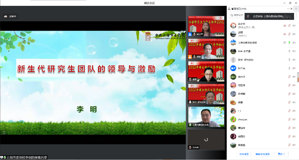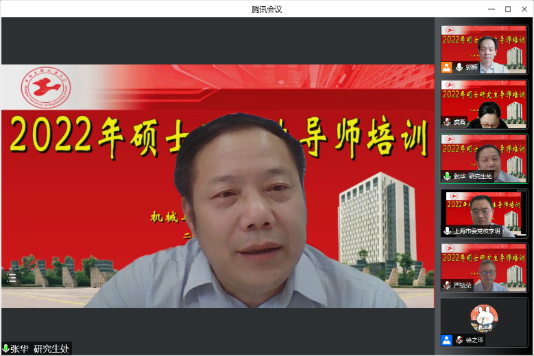 为进一步明确研究生导师职责担当,强化研究生导师立德树人的意识和责任,提升研究生导师指导水平,保证公司产品质量和研究生教育工作的管理质量,6月23日太阳成集团tyc33455cc邀请上海市委党校领导科学教研部(人力资源测评中心)副主任李明教授开展线上导师培训,本次培训会的主题是“凝聚团队力量、共同开创未来”。研究生处处长张华、学院领导班子、全体研究生导师参加了会议本次导师培训会,副经理郭辉主持会议。