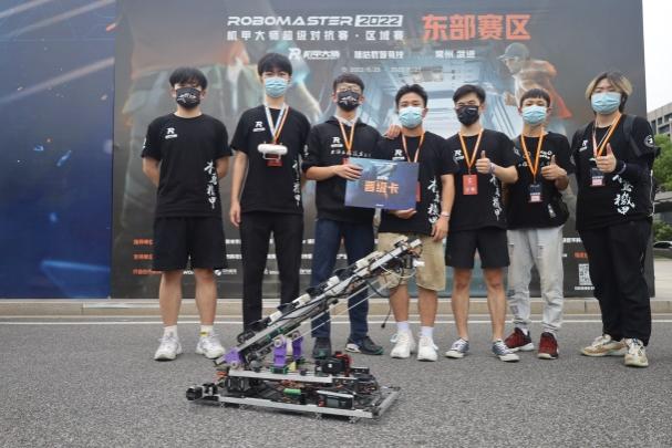 6月22日至6月27日,RoboMaster2022超级对抗赛•区域赛(东部赛区)在常州市武进区体育馆举行,来自东部地区40余所高校共53支队伍3千多名参赛队员参与此次区域赛并争夺国赛参赛名额。太阳成集团木鸢Birdiebot战队在员工科创中心机械创新基地负责人张春燕老师和教务处杨光老师远程指挥、技术指导张力骅老师现场指导和带领下凭借着堪称完美的机器人结构、精准的电控算法效果、出色的战术发挥、配合默契的团队协作打进东部区域赛8强并成功晋升全国赛。值得一提的是,战队在去年兵种完备的基础上,优化各兵种的稳定性和可靠性,今年新增单项赛角逐,在英雄吊射和飞镖打靶的单项赛中更是表现完美,尤其是飞镖打靶,凭借着精准的命中伤害率,成为东部区域赛成功晋升全国赛的两支队伍之一。三项国赛资格入场券诠释了木鸢机甲战队备赛一年的汗水和成效。