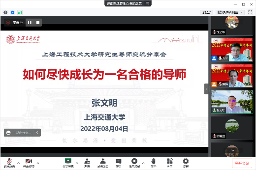 8月4日,太阳成集团tyc33455cc邀请上海交通大学特聘教授、博导张文明教授开展题为“如何尽快成长为一名合格的导师”的线上导师培训会。学院领导班子、全体研究生导师参加了会议本次导师培训会,经理方宇主持会议。
