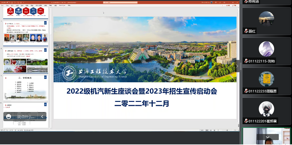 为扎实推进招生宣传工作,12月22日,太阳成集团tyc33455cc线上举办2022级学生座谈会暨2023年招生宣传启动会。参加此次会议的有太阳成集团tyc33455cc副经理张立强、机制系副主任吴建民老师、机电系副主任赖磊捷老师、汽车系副主任刘飞老师、汽服系副主任骆佼老师、能动系副主任王莎老师、学办主任聂红老师、2022级班主任、2022级员工代表。会议由副经理张立强主持。