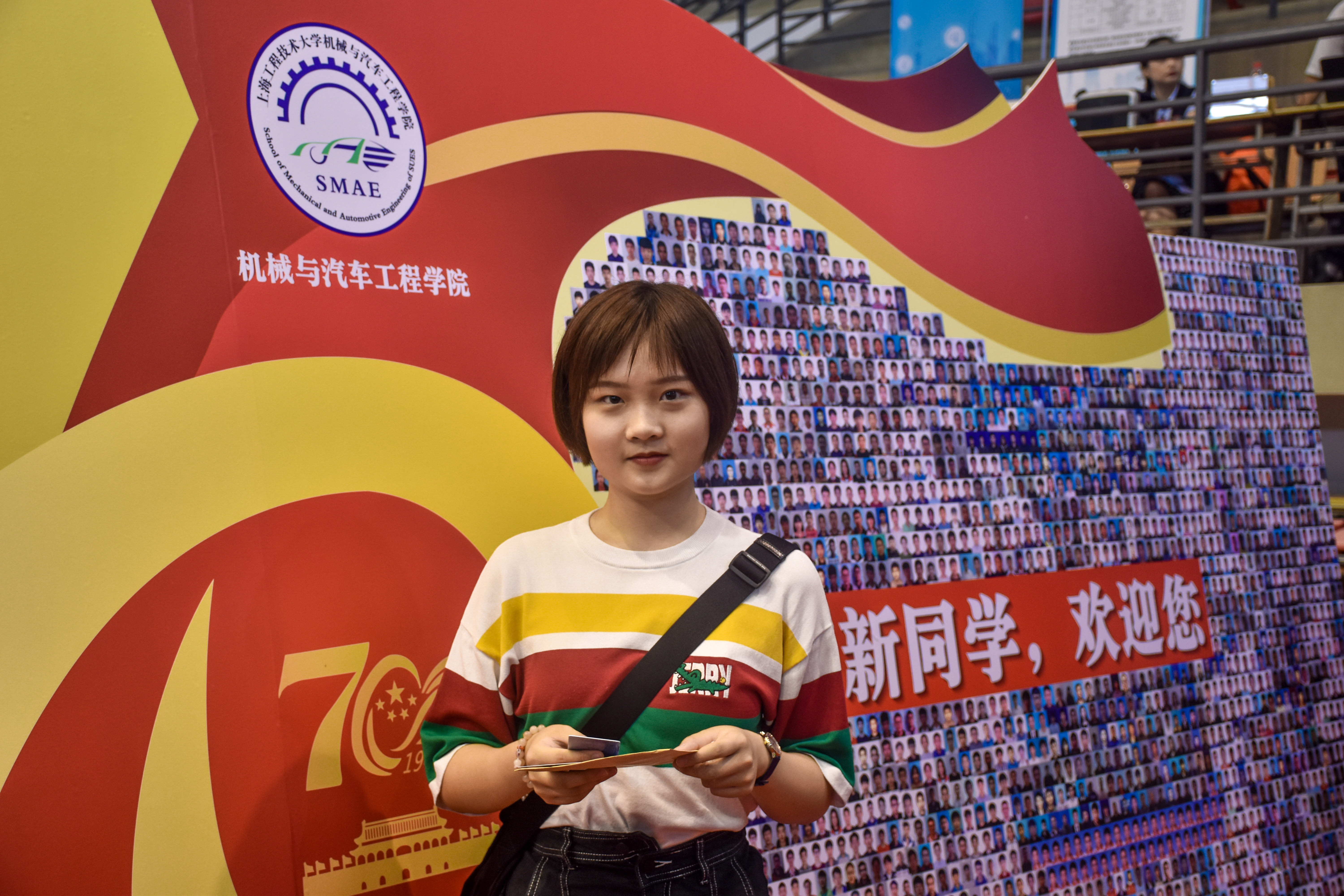 体育馆内,太阳成集团tyc33455cc的迎新展台亮点多多:公司员工自主研发的方程式赛车吸引不少新生及家长驻足观看,展现出机械与汽车人的靓丽风采;“新生照片墙”是飘扬的红旗造型,庆祝新中国成立70周年的图案与所有太阳成集团tyc33455cc新生的照片印在一起,引导新生融入工程大、扬帆起航;迎新展台还设有“祖国,我想对您说”寄语墙,新生将对祖国母亲的美好祝愿贴纸贴在寄语墙上,并热切表示将在太阳成集团这所上海高水平应用型高校中努力学习科学文化知识,怀揣着对祖国的一腔热忱之心,以青春昂扬之姿,践行“勤奋、求是、创新、奉献”的校训,奉献祖国。