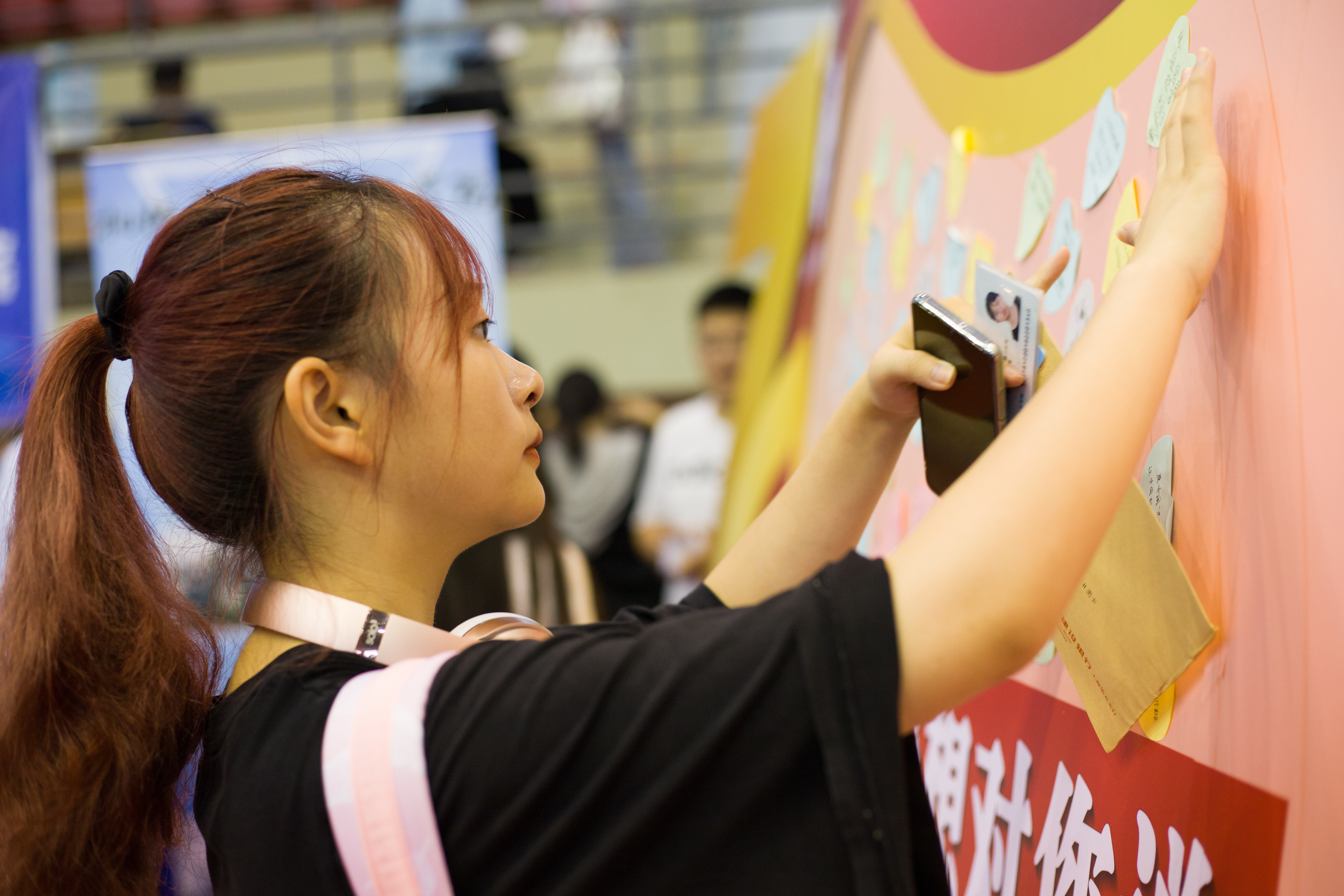 迎新活动现场的工作人员们为新生拍下入学后的第一张照片,为不远千里茫茫人海中相逢在此的缘分添上一道凭证,为往后漫长的四年时光留下初见时的珍贵纪念。