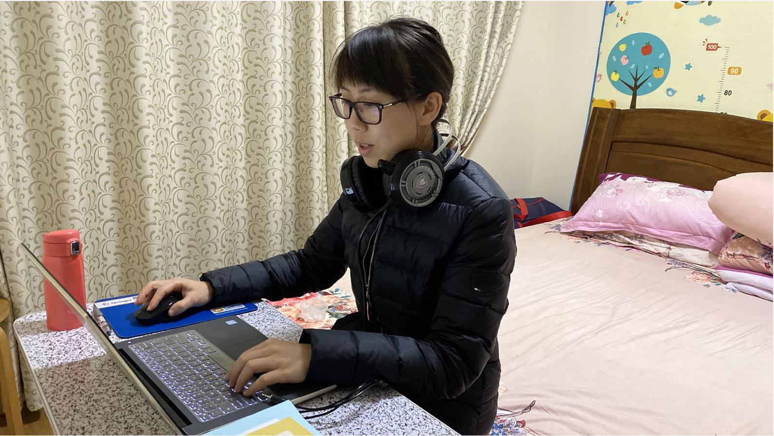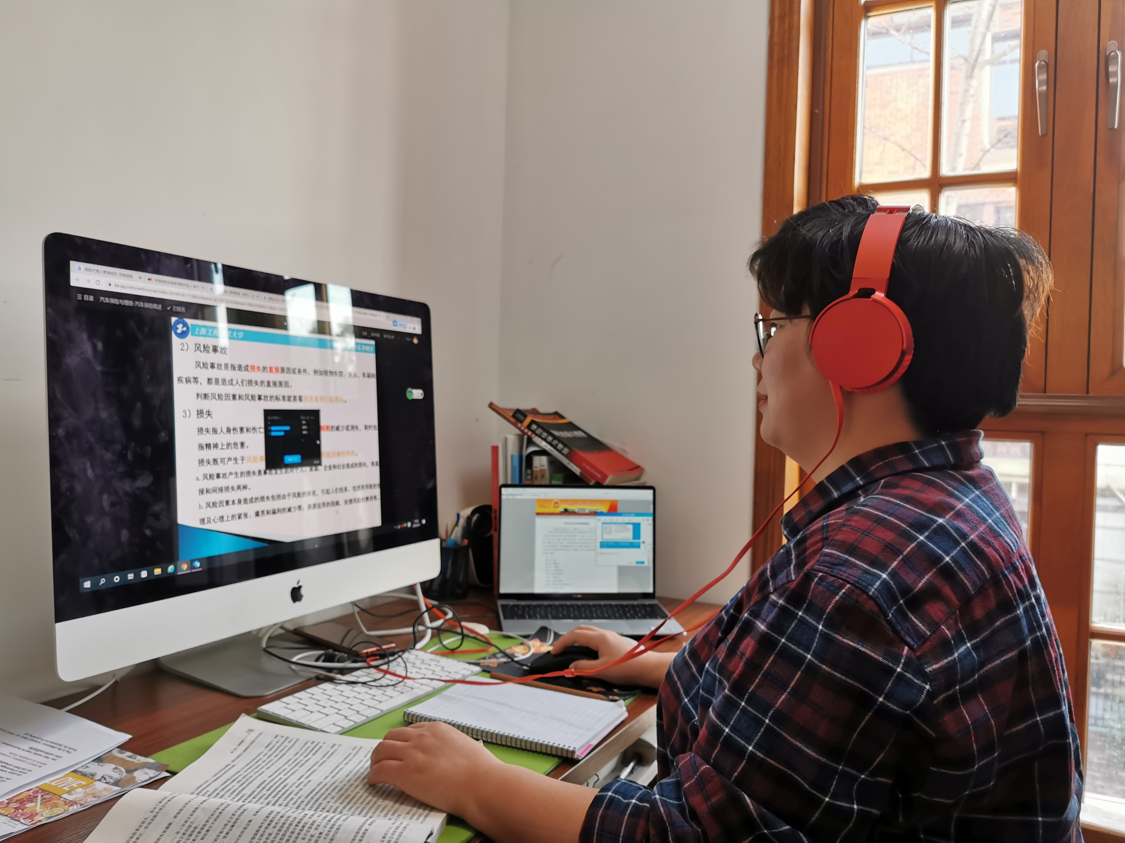 “虽然我身处疫区,但是在学院领导老师的关心下,在团队的共同努力下,课堂终于顺利开播,网络顺畅,员工互动性高,随堂练习顺利开展……,连日来种种焦虑,此刻一扫而光。”任课老师范平清感叹道。身在湖北武汉,受到疫情的影响,家里物资逐渐缺乏,纸张也是愈发捉襟见肘,但是为了更好地演示课程,儿子的作业本都被范老师“征用”了。随着在线教学的顺利进行,来自云端的师生互动让她倍感欣慰,一切都在痛并快乐中前行。