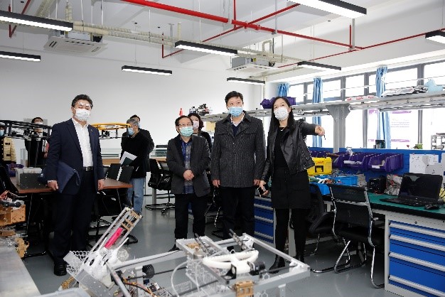 会前,李江书记一行还实地察看了智能协作机器人实验室、老员工创新实验室等学院重点实验室,参观了学院成果展,详细了解了学院搬迁后的空间规划布局。